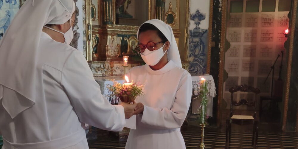 She received the white habit and veil from Prioress Sr. Madalena Mendonça.