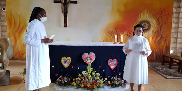All sisters give the sign of peace (during the Corona Pandemic as bow) as their pledge of loyalty.