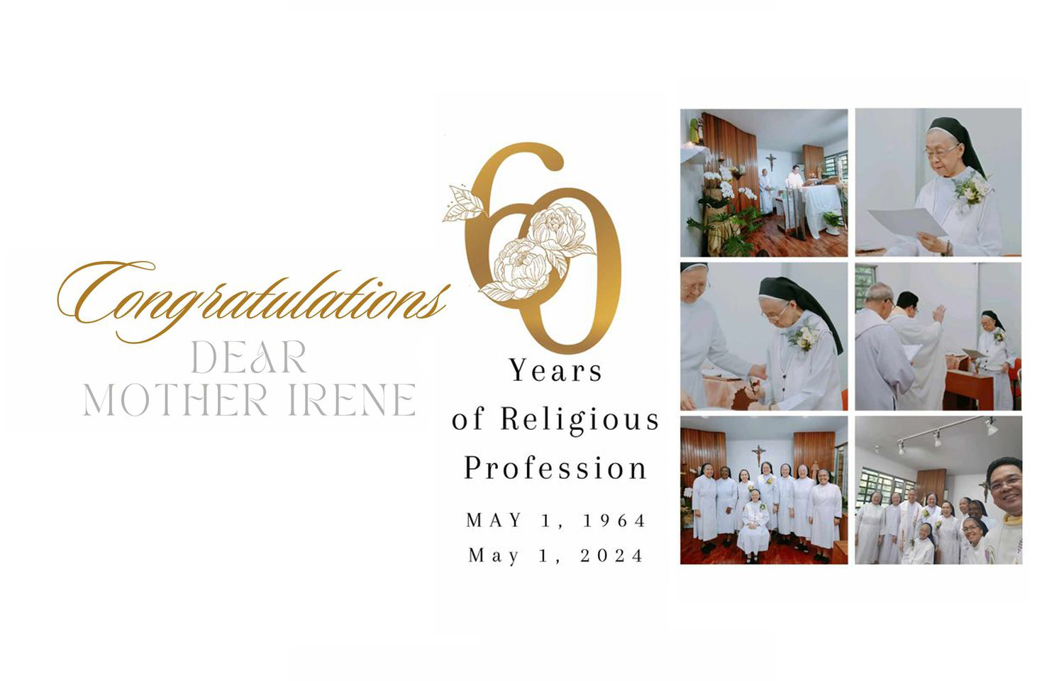 On May 1, M. Irenen Dabalus celebrated her jubilee of 60 years profession in Tagaytay / Philippines. She was Prioress General of our Congregation from 1994 to 2006. Congratulations,and may God reward you for all you did and are still doing for our Congregation!