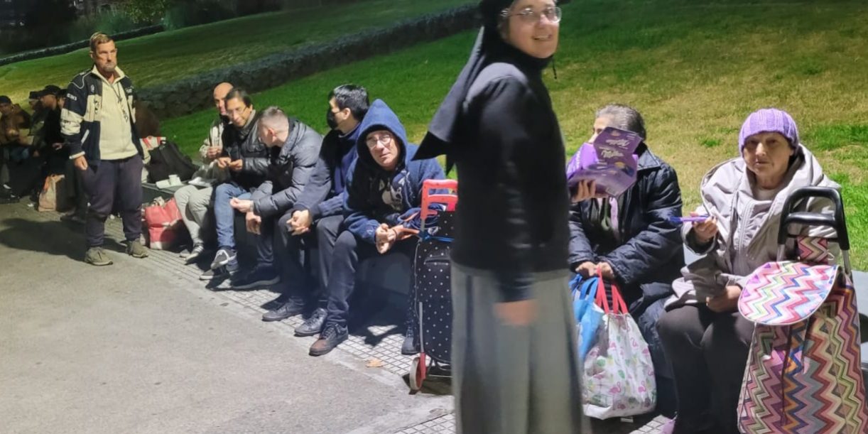 Argentina was originally an attractive and liveable country, but for around 20 years it has been suffering from a massive economic and institutional decline, which has had a very negative impact on the standard of living and education and has furthered the loss of values in society. Half of the population lives below the official poverty level. Many can no longer pay their rents and live on the streets. With the help of volunteers, our sisters in Argentina offer breakfast and a warm evening meal every week on a public street to around 120 homeless men and women. In the cold season, we also distribute blankets, socks, gloves and hygiene articles as required. With financial support of 80 euros, we can continue to maintain this project.